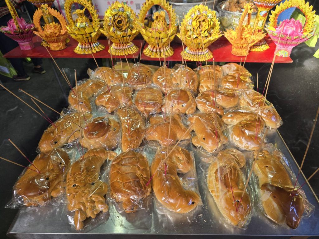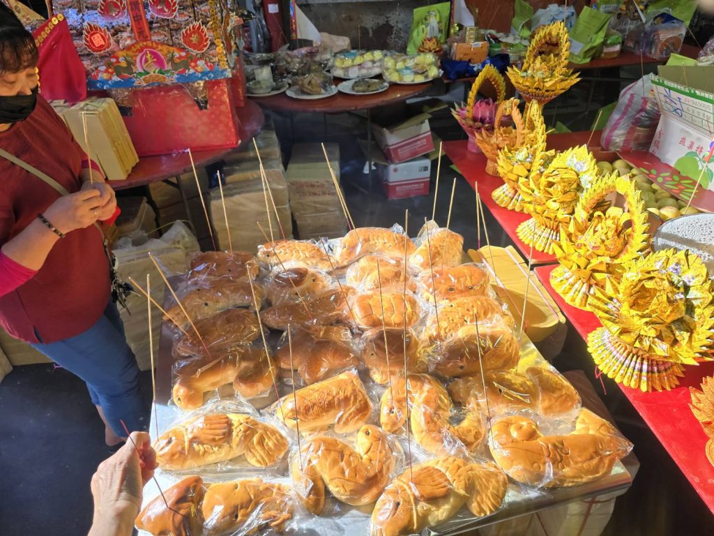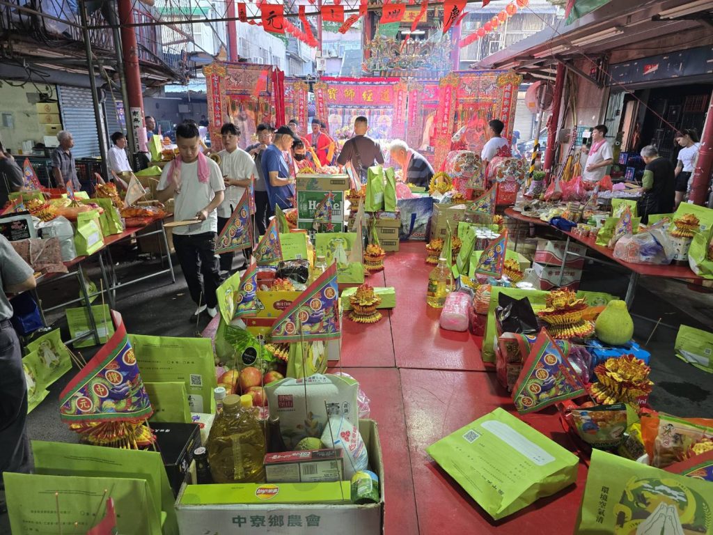 - 祭品準備: 供品通常包含三牲(雞、豬、魚)、四果(四季時令水果),以及零食、泡麵、餅乾、飲料等。