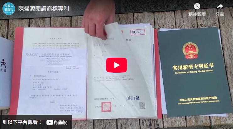 陳盛源(舊名陳聖元)剛好有機會研究專利、商標,美國專利(7017737B1),澳洲,台灣,中國,不過多年後,個人認為「會銷售」「會推廣」比較實在