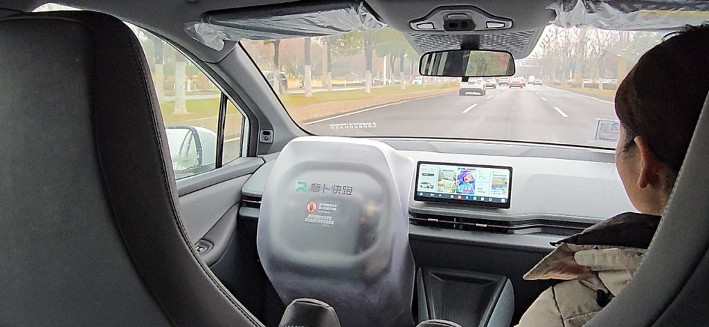 乘坐体验: 车辆自动规划路线、自动变道、避障、通过复杂路口,运营区域已从单一园区扩展至覆盖全城的复杂场景。